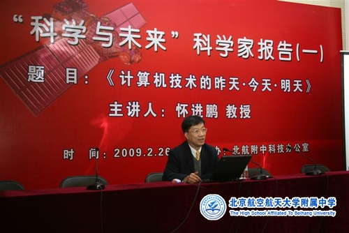 北航大学副校长怀进鹏教授做题为“计算机技术的昨天·今天·明天”的报告 怀教授在罗滨校长、吴鹏程书记陪同下视察附中科技俱乐部 北航大学常务副校长怀进鹏视察北航附中 ...