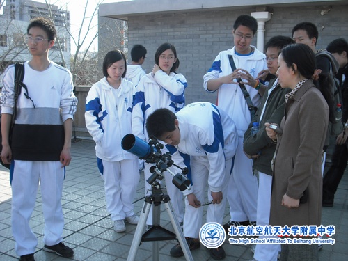 调整望远镜 观看土星光环 观看月亮环形山 听老师讲解天文望远镜的构造 先睹为快 活动前合影 4月5日,我校教学处、科技办组织三十多名天文爱好者到北京师范大学参观了天...