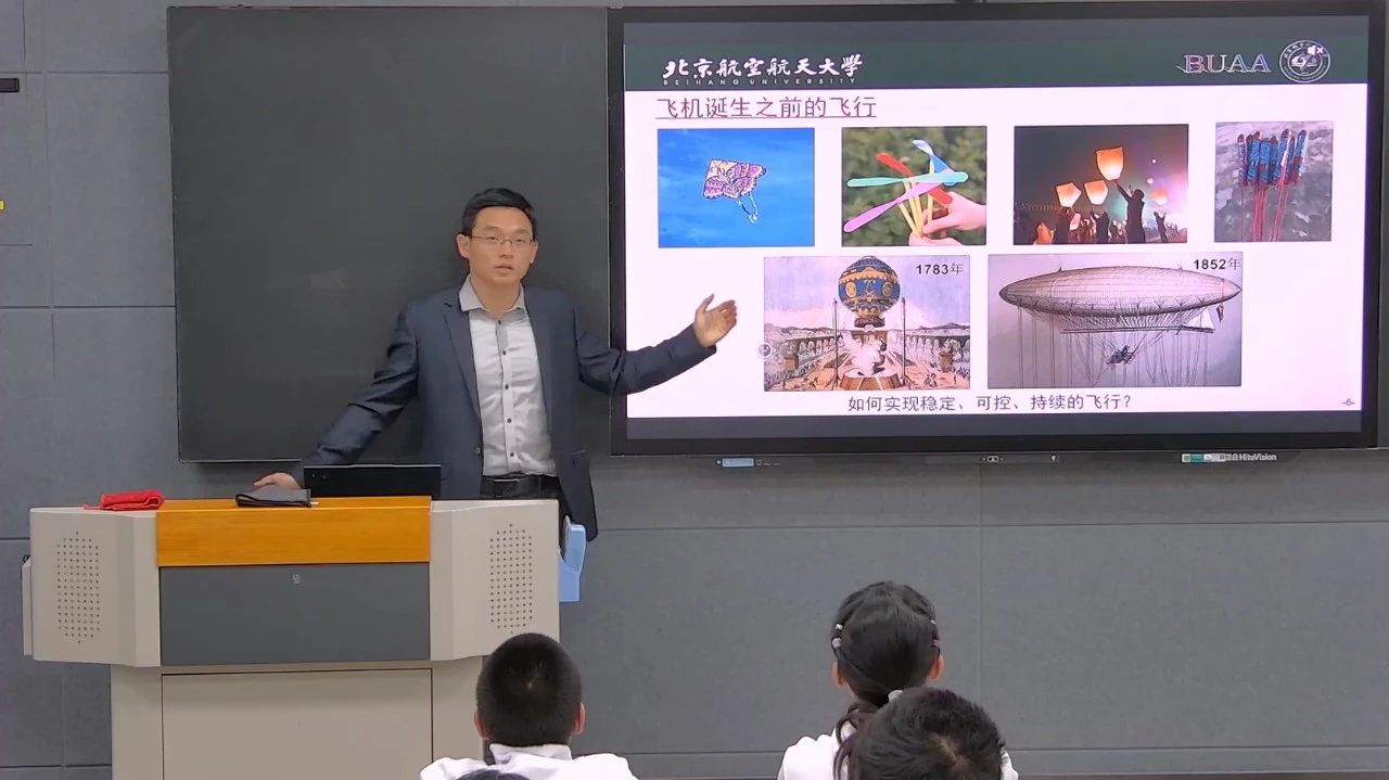 12月25日,北京麻豆精品秘 国产传媒航空科学工程学院博士生导师蒙志君教授应邀为初一年级带来一场“人类如何飞上天”的航天主题讲座,蒙志君教授为大家介绍了人类飞行器的发展历史,飞行器飞行的科学原理及其分类,使同学们深深认识到航天飞行器对人类生活所产生的巨大价值。蒙教授提到,随着我国科学家的不断探索和钻研,中国航天技术在短短几十年间拥有了质的飞跃,从神舟五号的发射成功到如今神州十九号飞船圆满完成第一次出舱任务,从中国嫦娥计划的开展实施,到“天问一号”的火星探测,中国的航天技术已经逐渐跻身世界前列。