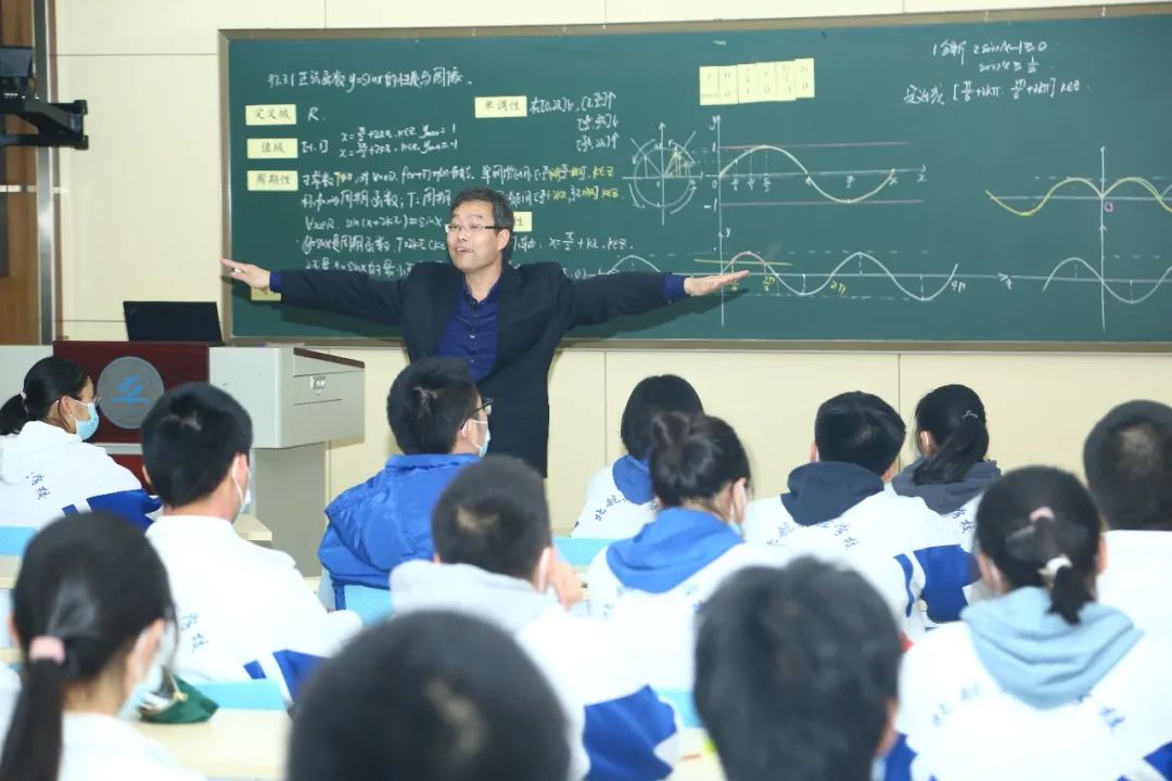 首先进行听课观摩,由我校2020年9月新入职的张艾静老师和其师父全国优秀教师、海淀区学科带头人李艳红老师进行了“正弦函数的性质与图像”两节课的展示。