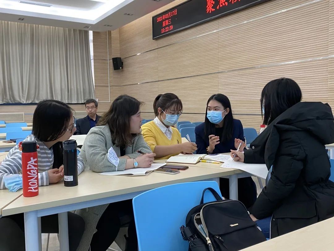 之后,海淀区各位新任高中数学教师分为四个小组,结合两节课进行讨论并且分享了各自的感受与收获。整个讨论环节,老师们积极参与、相互探讨,现场氛围热烈!