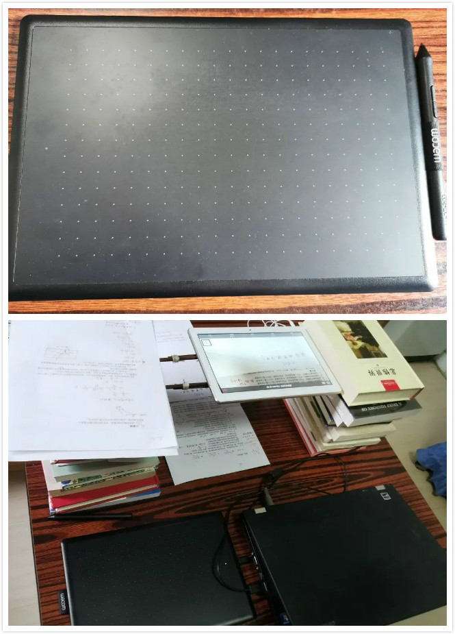 如何解决书写速度的问题,如何清晰的呈现,经过反复的琢磨、实践、改进,最终版是这样的,洋枪土炮古今结合的感觉!但是确实是多种尝试之后的选择。用Pad作为投影,屏幕大、分辨率高,而且纸上书写,字形好看画图方便。如果需要用到PPT、课件展示之类的讲授偏多内容,切换到电脑手写板系统,展示起来很方便。只是那个土得掉渣的托着Pad的架子,两侧是简单的书做墙,六根筷子连接好就是横梁了,看似粗糙的外表却硬核实用!它们陪伴着我和可爱的孩子们度过了极其宝贵的学习时光。