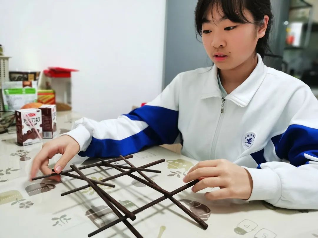 用9根筷子搭建木质拱桥,然后放置重物,测试拱桥的承重能力。实验证明:9根筷子搭建的拱桥完全可以承受重物的压力;拱桥具有桥轻,易搭建、承重能力强、无立柱等优点。