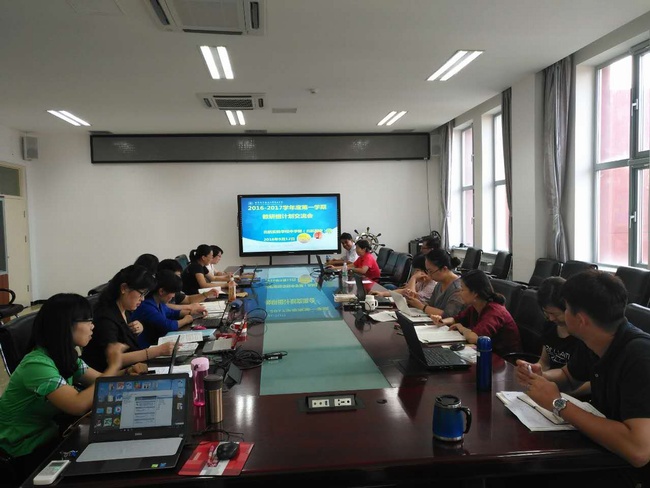 教研组是学科教师的专业共同体,是学校教学研究的主要阵地,为了推进新学期教研组的建设,全面落实学校教学计划,2016年9月12日下午,我校在大会议室召开了新学期教研组工作计划交流会。会议由教学处杨兆元主任主持,教学校长许杰,主管初高中教学的孙英主任、谭翠红主任以及16位教研组长出席了会议。