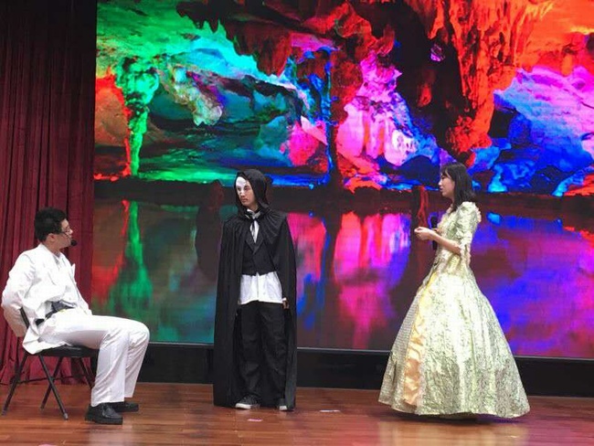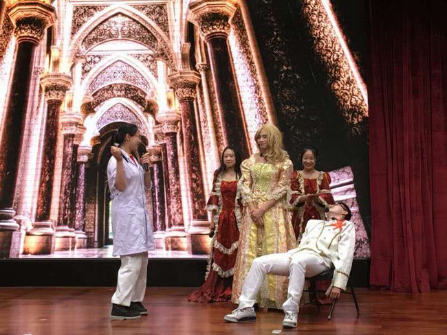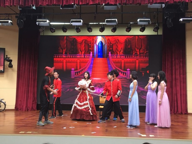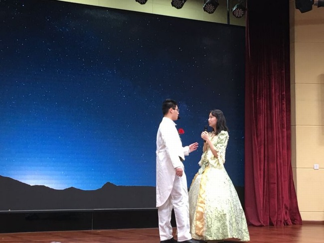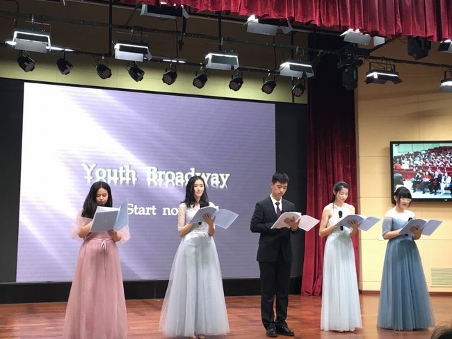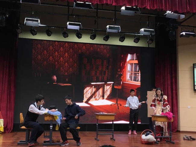 北航实验学校中学部(北航附中)高一年级学生于4月1日下午两点在北航实验学校中学部阶梯教室举行了第五届“青春百老汇”英语剧演出,并圆满落幕。我们有幸邀请到北航实验学校校长吴鹏程、书记王群,中学部行政校长燕晖,中学部教学校长许杰及各处室主任来观看此次节目。