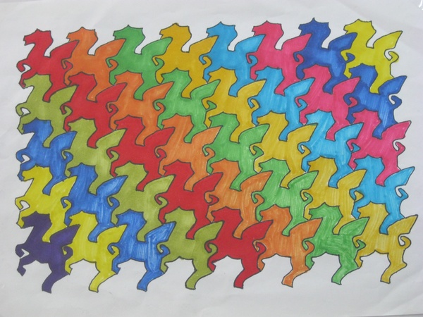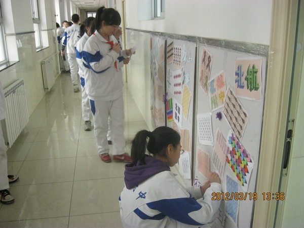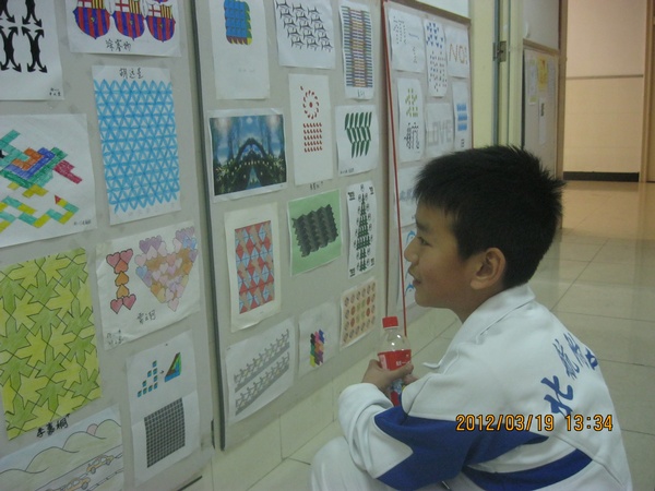 三月初,学生利用平移知识设计了美术字或图案,各班都将学生的作品制作成展板,在年级展出,数学老师结合学生互评的结果、参考美术老师的专业意见及数学“平移”知识三方面综合考虑选出获奖的作品,进行全年级表彰。