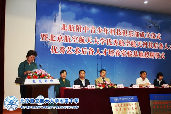 在航空航天优秀后备人才培养基地授牌的同时,优秀艺术后备人才培养基地也在附中挂牌。今后,作为北航附中又一品牌的学校艺术团也将来到中学生身边,为人才全面培养架起一座桥梁。