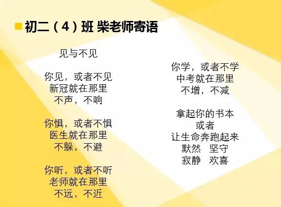 钟南山院士在给孩子们的回信中,写下了对青少年的寄语:“用知识缝制铠甲,各行各业都将由你们披甲上阵。希望你们不惧艰辛、勇敢前行。”我们的班主任老师结合自己的专业背景,诚邀班级任课教师,联手打造防疫科普课程。有趣的实验,精彩的分析解读,班主任引导学生感悟知识的魅力,鼓励学生摒弃浮躁,崇尚真知、探求真知。用知识武装自己,壮大自己,日后共担建设祖国,昌盛民族之大业。
