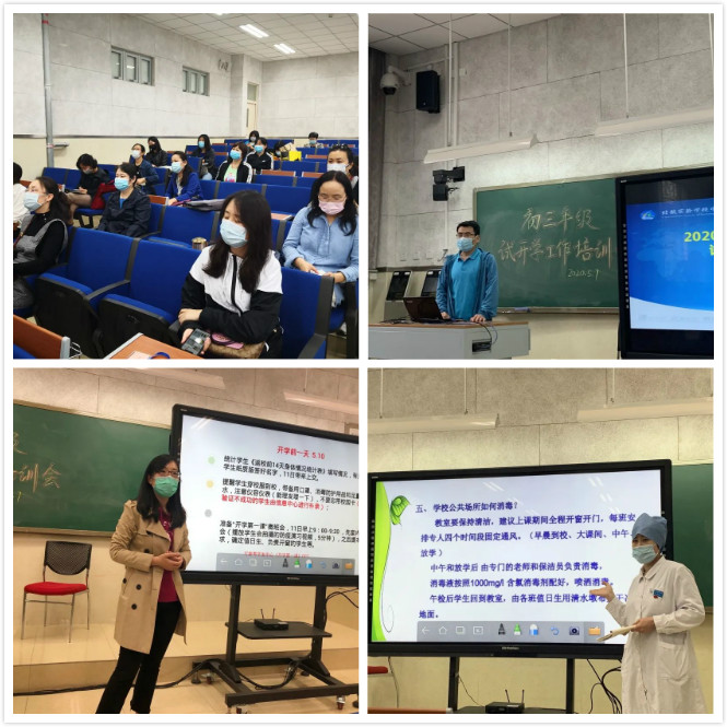 在北航疫情防控领导小组的指导下,实验学校中学部各部门不断积累经验,为顺利开学奠定了基础。5月6日,全体初三任课教师参加了试开学工作培训及演习。会上,北航实验学校校长吴鹏程老师强调了初三学子平安开学的重要意义及教委相关政策要求,教学与课程中心、学生发展中心、医务室的负责教师分别进行了相关工作培训。