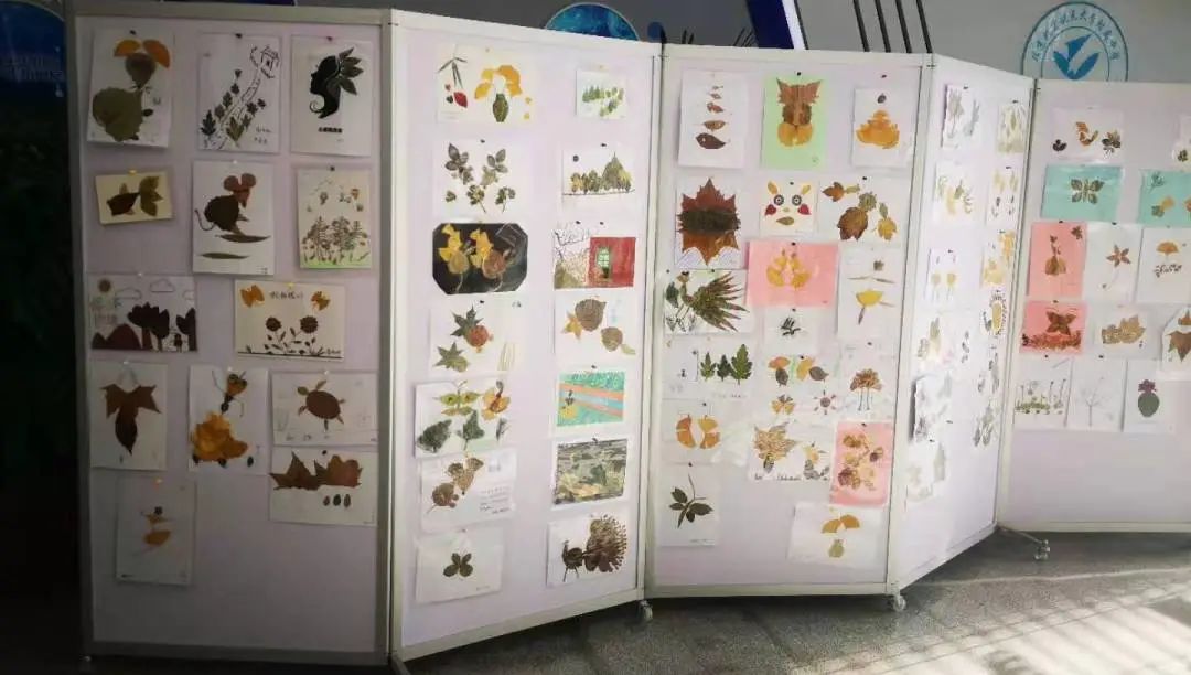 秋天的校园布满金灿灿、红彤彤的落叶,学校工会组织会员用落叶进行创作,一张张作品充满童趣,美不胜收,难忘今秋!