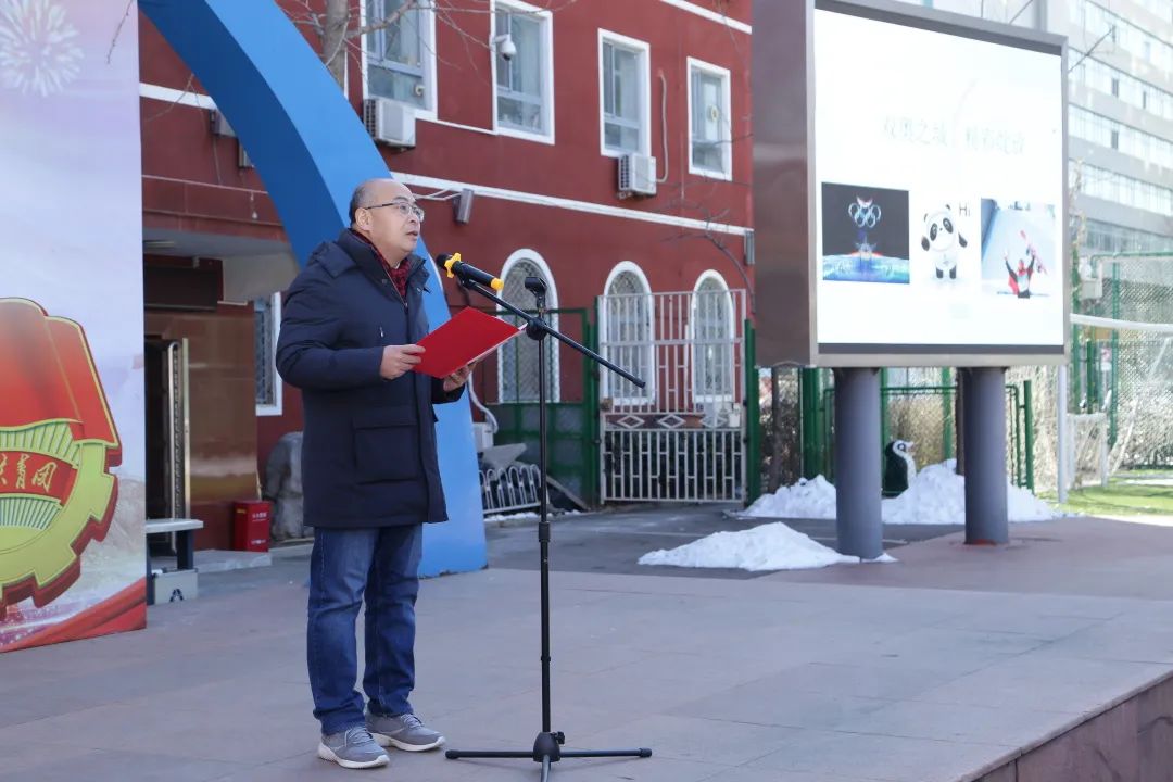 首先,大屏幕播放短片《筑梦冰雪,冬奥有我》,展示同学们丰富多彩的假期生活。2022年北京冬奥会如约在家门口拉开了序幕。和着新春的喜庆气氛,奥运会绚烂夺目的开幕式、扣人心弦的各项比赛,一下子把过年的气氛烘托了起来。除了观看比赛,同学们也积极参与到冰雪活动中,用绘画、书法、运动等多种形式宣传冬奥、助力冬奥,感受冰雪带来的无限乐趣。