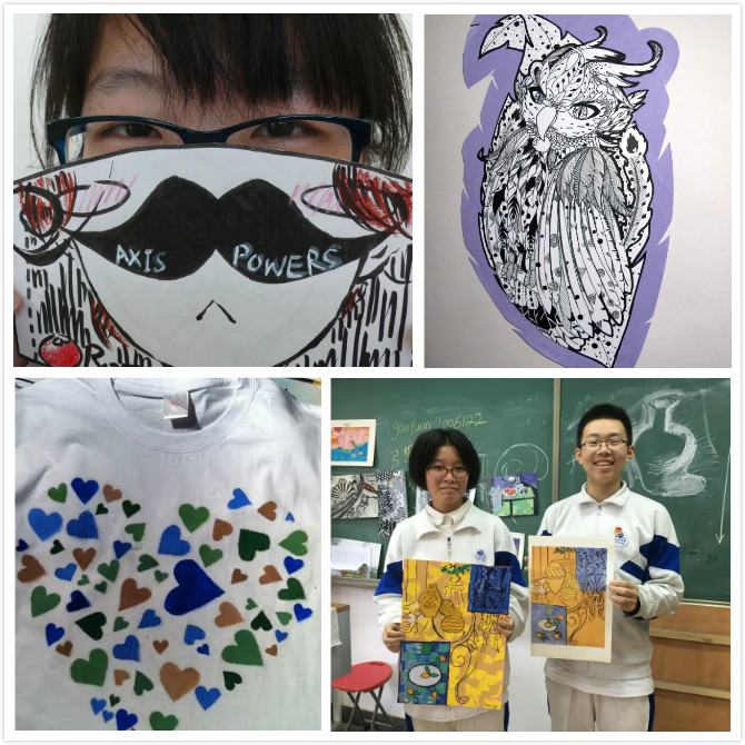 在学校搭建的国际艺术活动平台中,音美组老师带领学生与英国、澳洲、日本等友好学校进行艺术交流,提升学生们的文化艺术鉴赏能力,开阔了眼界。