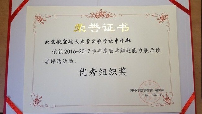 2017年3月26日在北京101中学举行了“2016-2017年度数学解题能力展示活动”的颁奖典礼。