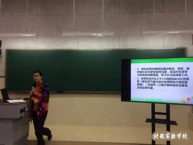 12月10日是“停课不停学”的第三天, 上午8:00,北航实验学校中学部(北航附中)召开空气重污染红色预警期间工作例会,就“停课不停学”第二天的工作情况进行总结。