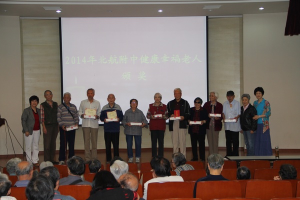 9月24日上午,北航附中近一百名退休教师团聚在附中阶梯教室参加了“庆祝教师重阳节日 共享幸福美好时光—2014年北航附中退休教师‘两节’茶话会”。